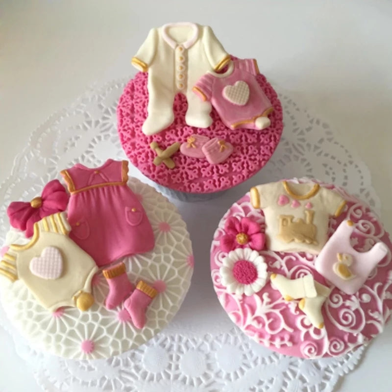Perfect for making baby clothes toppers for your baby shower themed cakes, cupcakes, cookies and chocolates. Can be used with fondant, chocolate or gumpaste.
