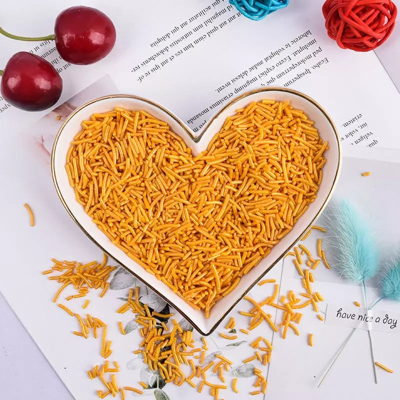 Gold sugar strands add sparkle and shine to your cakes,cupcakes, cookies or cake pops. Also perfect for stamens...