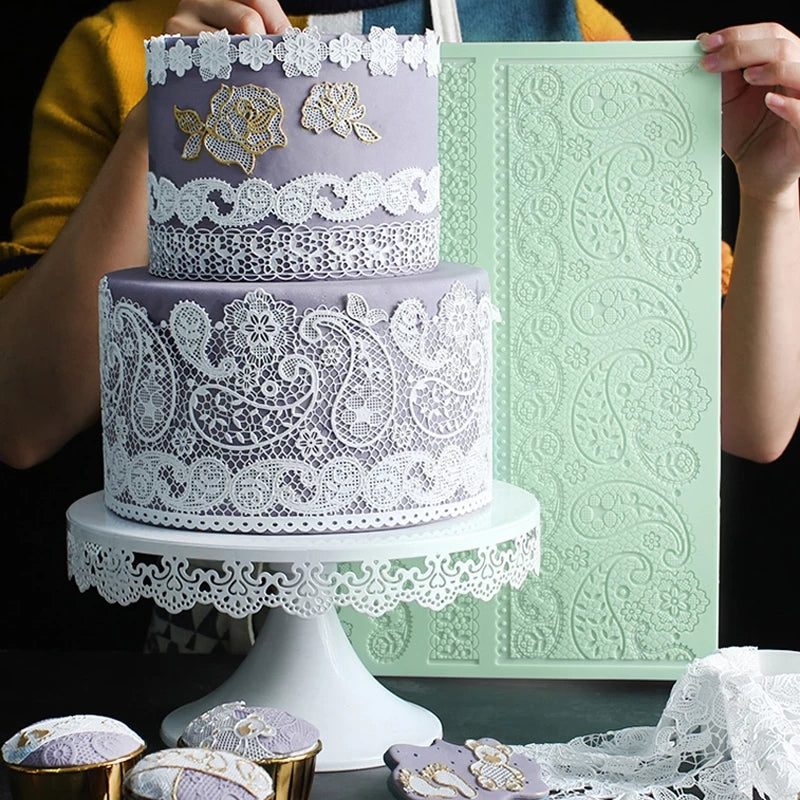 The silicone cake mat has perfect lace details, creating a realistic lace border, so that the lace can be perfectly presented every time. Made from high-quality food-grade silicone, making it is flexible and durable in use, easy to clean and store: It can withstand high temperatures from -40°C to 230°C, and can be placed in a dishwasher, oven, refrigerator, and microwave. Best used with edible lace paste.