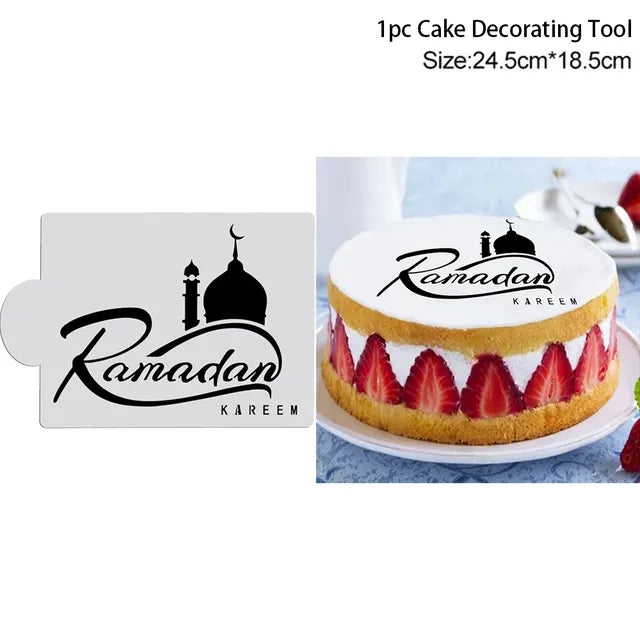RAMADAN KAREEM MESSAGE WITH MOSQUE CAKE STENCIL