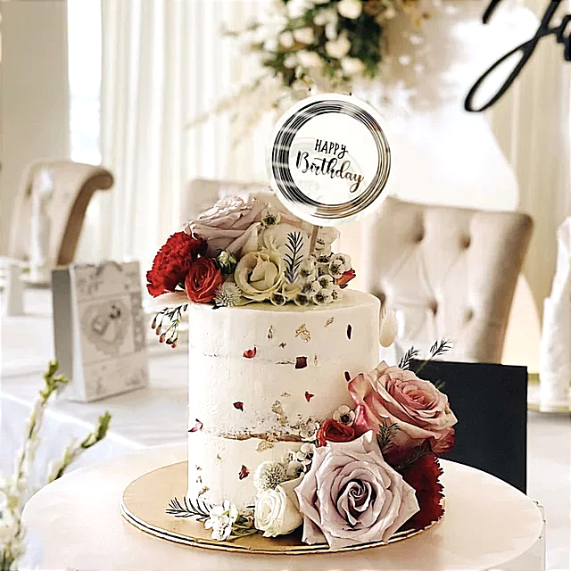 Say Happy Birthday In style with our elegant unfinished acrylic paint with gold foil, birthday message toppers. Toppers are reusable and without odor.